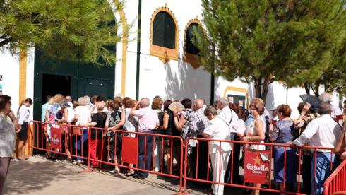 Éstos pueden acceder a través de invitación y disfrutar de una comida en la Caseta Municipal que comenzó a las 14.00h aunque las largas colas se formaron mucho antes.