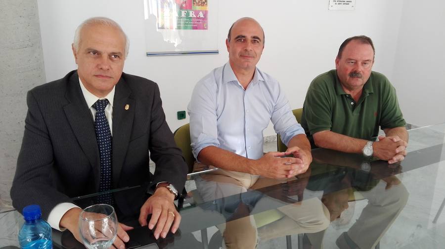 Junto al alcalde y presidente de la Entidad Ferial de Zafra, José Carlos Contreras han comparecido el comisario de Ferias, Santiago Malpica y el gerente de la Entidad Ferial, Pedro Ramos.