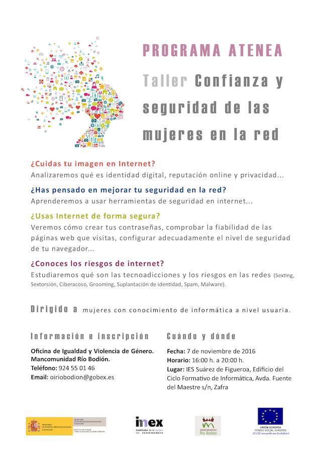 La Mancomunidad Río Bodión, enmarcado en el Programa Atenea, imparte el Taller de confianza y seguridad de las mujeres en la Red, un taller pensado para un grupo de unas 20 mujeres y que estudiará la imagen que se da en Internet.