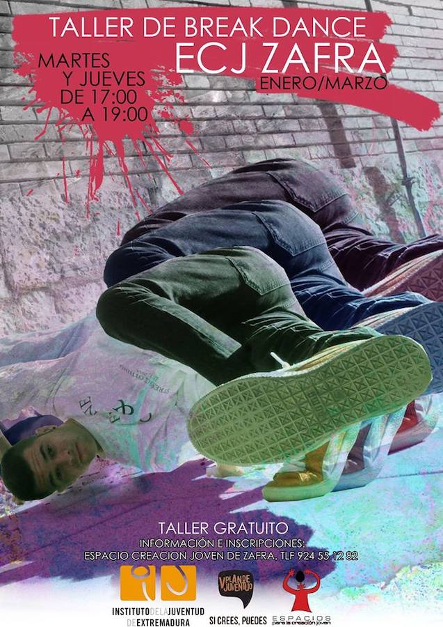 Este taller de break dance, está especialmente indicado para mayores de 12 alos y se realiza en el Espacio de la Creación Joven de la ciudad durante enero, febrero y marzo los martes y jueves de 17.00h a 19.00h