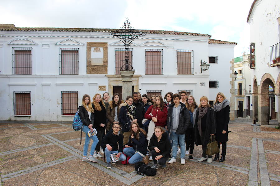 En la ciudad zafrense dedicaron la mañana del lunes a conocer sus monumentos e historia a través de una visita guiada por la Oficina de Turismo. Así visitaron algunos de los monumentos más representativos de la localidad. Junto a los alumnos se encontraba su profesora Odile Achard "El intercambio consiste en ver como son las clases en un centro similar al suyo y convivir con las familias, además de las actividades de ocio y culturales Lucía Minero fue la guía de turismo que les explicó la historia del interior y exterior de los lugares más emblemáticos.