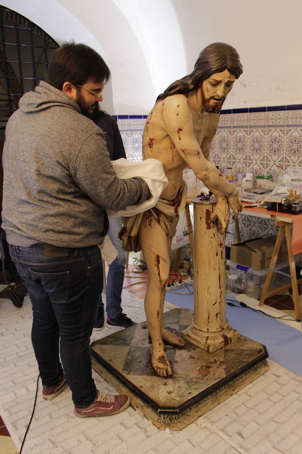 La imagen del Cristo Amarrado a la Columna será pieza del mes tras su restauración