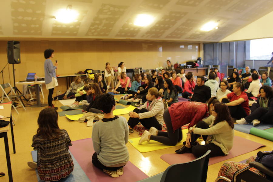 Los asistentes, que acudieron con esterillas, pusieron en práctica lo aprendido sentados o tumbados y realizando los ejercicios de respiración y relajación guiados por la voz de la profesional.