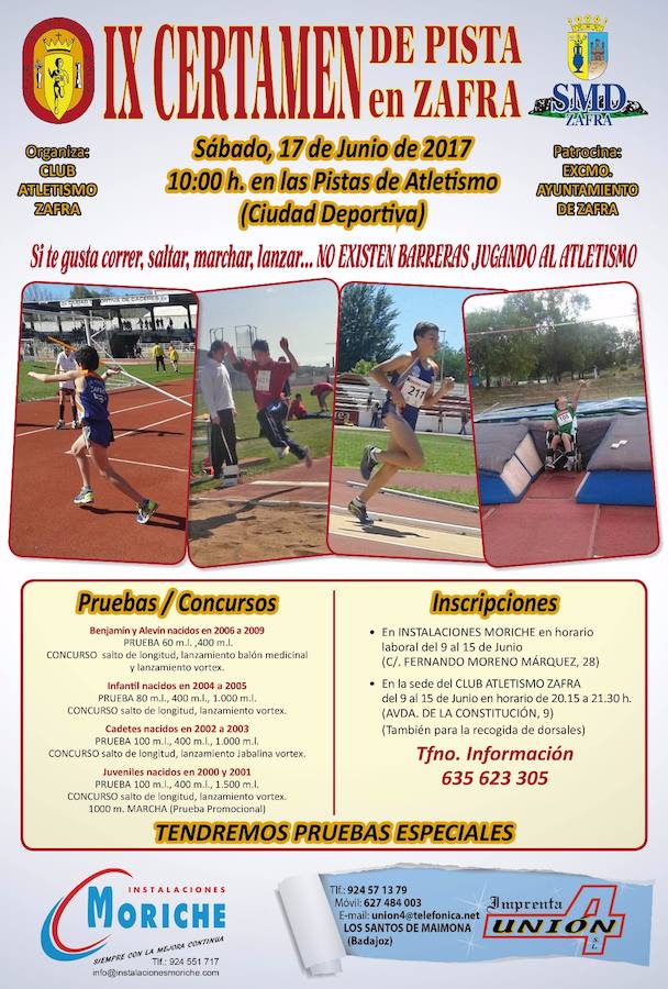 El club de atletismo organiza el IX Certamen en Pista de Zafra que se celebrará en las pistas de atletismo de la Ciudad Deportiva, en la mañana del 17 de junio a las 10.00h