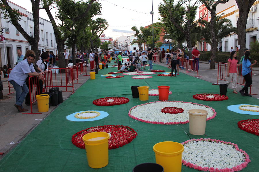 Un alfombrado que se preparará desde la noche siguiente. El alfombrado floral se iniciará con los dibujos y posteriormente, se utilizaran diferentes materiales como 40.000 claveles, moqueta verde y unos 1.200 kilos de sal coloreada. En su diseño y composición también participan asociaciones de la ciudad.