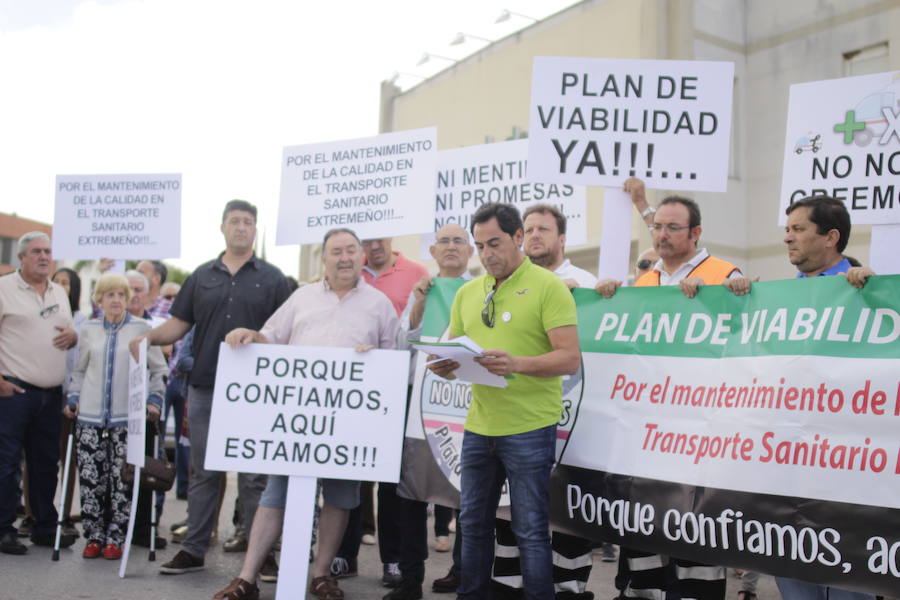 Más de 150 personas, entre trabajadores del transporte sanitario, familiares, representantes del Partido Popular, trabajadores del hospital de Zafra y simpatizantes se han concentrado a las 10.15h del miércoles a las puertas del Hospital.