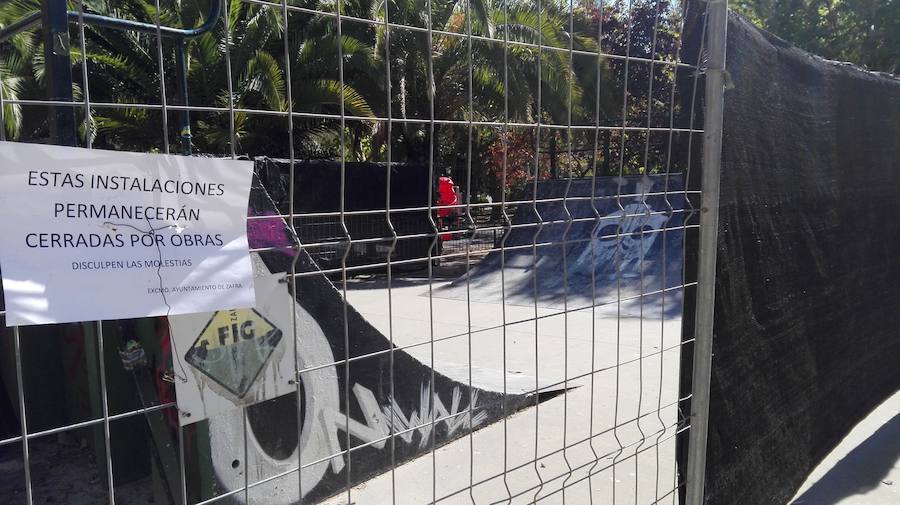 No obstante, los aficionados al patinaje este verano deberán acudir al segundo escenario ya que en estos momentos la rampa del parque se encuentra en obras. Una rampa compuesta por una estructura de cemento y un vallado metálico de seguridad anclado a este.