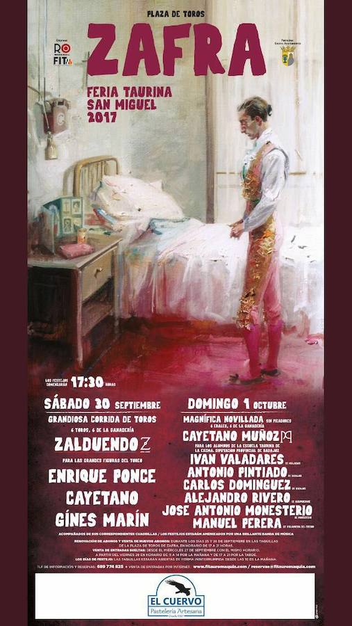 La Feria taurina de Zafra arranca el 30 de septiembre a las 17.30 horas. El segundo día de festejos, el domingo 1 de octubre, también a las 17.30h, se celebrará una corrida de rejones, con toros de la ganadería de Cayetano Muñoz para los rejoneadores Iván Valares, Antonio Pintiado, Carlos Domínguez, Alejandro Rivero, José Antonio Monesterio y Manuel Perera, alumnos de la Escuela taurina de la Diputación de Badajoz.