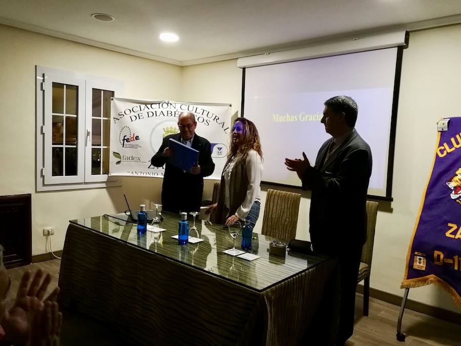 Además de la entrega de la placa conmemorativa de esta nueva relación entre estas dos entidades sin ánimo de lucro, la jornada se completó con una charla- coloquio sobre 'Cómo mejorar tu diabetes' impartida por el médico de familia Juan Peña. La charla contó con la presencia de casi un centenar de asistentes que conocieron más en profundidad la enfermedad que lejos de paliarse sigue avanzando.