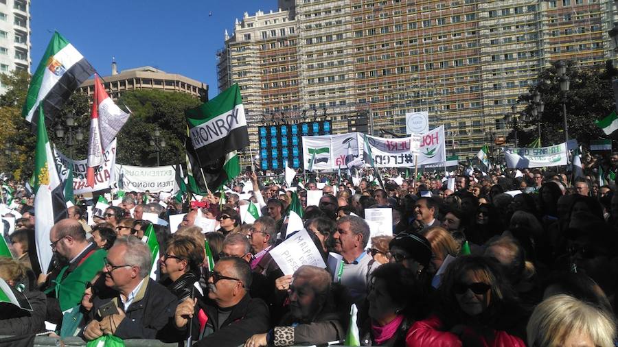 Junto a todos los integrantes del Pacto por el ferrocarril, extremeños de nacencia o de adopción, así como un sinnúmero de personas procedentes de distintos puntos de España, junto a representantes políticos, sindicales, empresariales, agrarios, docentes, artísticos, culturales, deportivos, asociaciones de todo tipo así como hogares extremeños en el resto de España... han alzado sus voces al unísono, no contra nadie, sino a favor de Extremadura, para reclamar unas infraestructuras ferroviarias del siglo XXI que actualicen esta comunicación terrestre como una de las piezas clave para el progreso, la competitividad y el desarrollo integral de Extremadura.
