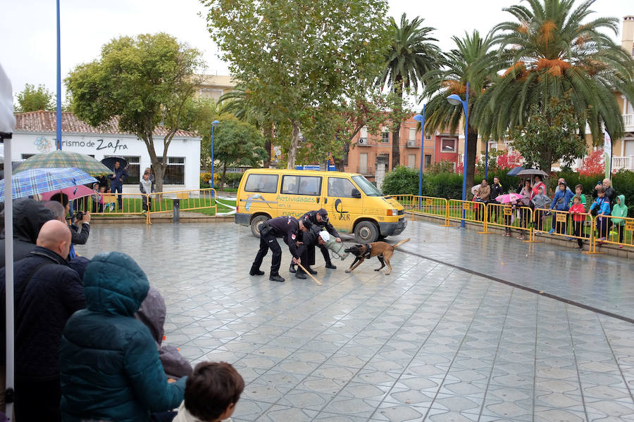 Alrededor de 300 personas acudieron, en algún momento de la mañana del sábado, a la plaza España para disfrutar de la I Feria Canina de Zafra, pese a la lluvia.