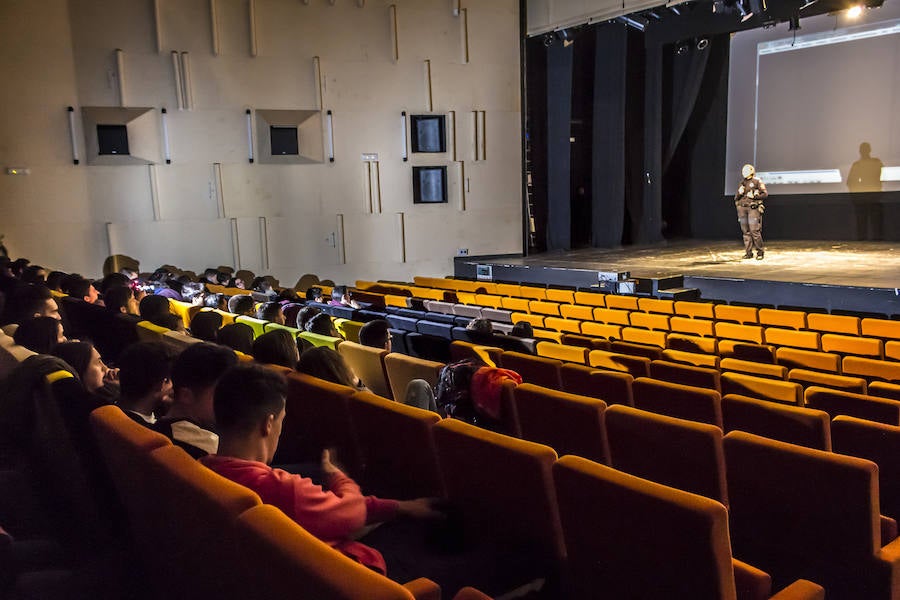 En el Teatro de la ciudad, los jóvenes escucharon los testimonios de las personas que suelen colaborar en accidentes de tráfico, como un bombero o una policía local que han recordado los casos que más le marcaron.