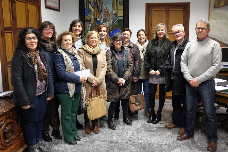 Las concejalas de bienestar social e igualdad, María del Carmen Cabello y de participación ciudadana, Antonia Toro recibieron en el Ayuntamiento a las asociaciones implicadas en la organización del III Roscón Solidario. Desde la asociación y cofradía de la Esperancita se organiza este evento con el fin de recaudar fondos para ayudar a distintas asociaciones humanitarias de la localidad. En esta ocasión la ayuda ha ido a parar a Zafra solidaria, Cáritas y Amigos del pueblo saharaui que se reparten a partes iguales los 2.376 ¤ recaudados gracias a la venta a precio simbólico de 1¤ del Roscón de Reyes y chocolate. María del Carmen Cabello agradecía la implicación que las distintas asociaciones de la localidad tienen con todas aquellas personas que lo necesitan, e invita a la buena coordinación entre ellas para aprovechar tanto los recursos municipales como las recaudaciones de las actividades sociales. Por su parte la concejala de participación ciudadana, Antonia Toro reiteraba el compromiso que el Consistorio de Zafra tiene con esta actividad uniéndola a la entrega de cartas de SSMM los Reyes Magos organizada desde el ayuntamiento y aportando la logística necesaria. Con los 792¤ que le corresponden a cada asociación cubrirán gastos de las principales actividades que vienen realizando para paliar los problemas económicos de las familias menos favorecidas de Zafra. Zafra solidaria lo empleará en los gastos del comedor social, Cáritas al pago de facturas de luz y gas y la asociación de amigos del pueblo saharaui lo destinará al pago de billetes de avión.
