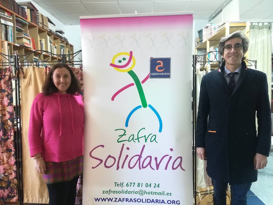 Vicente Sánchez, director de Caja Almendralejo de Zafra acompañó a Nanda Sánchez, presidenta de Zafra Solidaria para hacerle entrega de la ayuda de 3.000 euros con la que colaboran en esta ocasión con la entidad.
