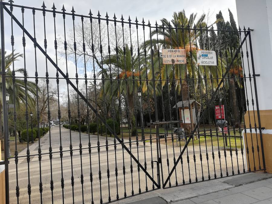 La Policía local de Zafra ha anunciado que el Parque de la Paz se ha cerrado en previsión de las fuertes rachas de viento que se prevén esta tarde, "como medida de seguridad para evitar que una posible caída de rama pueda lesionar alguna persona que se encuentre paseando".