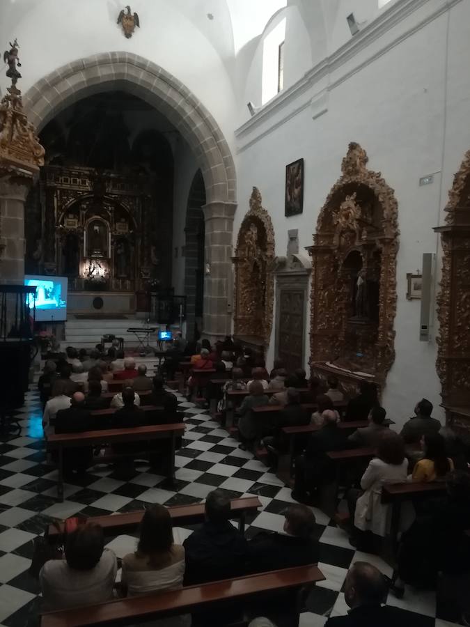 En primer lugar la Coral Santa Cecilia de Zafra, dirigida por Toni Porras abrió el acto con su música. Después, José Santana, médico y fotógrafo aficionado preparó un contenido audiovisual de unos 15 minutos sobre la titular de la Hemandad y las procesiones. A través de una multitud de imágenes se vio el paso de la celebración y la hermandad a través de los años.