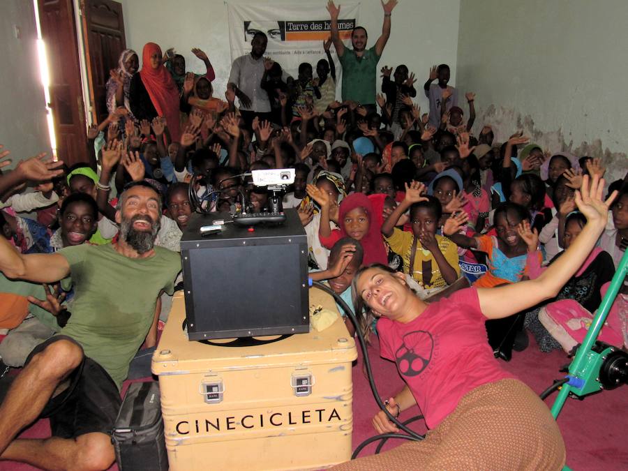 Cinecicleta es un proyecto cultural, social y tecnológicamente sostenible que Isabel (31, Castellón) y Carmelo (45, Madrid), amantes del cine, apasionados por la bicicleta y con ganas de viajar y compartir, desarrollaron por tierras africanas. Su punto de partida fue Madrid y el destino Madagascar, y ha tenido una duración estimada de dos años. Durante este tiempo atravesaron África, siempre en bicicleta, con un cine ambulante que transportaron ellos mismos con un objetivo: ir exhibiendo películas, cortos y documentales por aquellos lugares que atravesaron durante su periplo bicicletero.