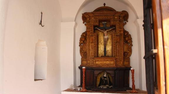 Rubio explicó que la tradición popular cuenta que la talla del crucificado fue encontrada dentro de un pozo y extraída con una escarpia que aún cuelga como testigo junto a la imagen.