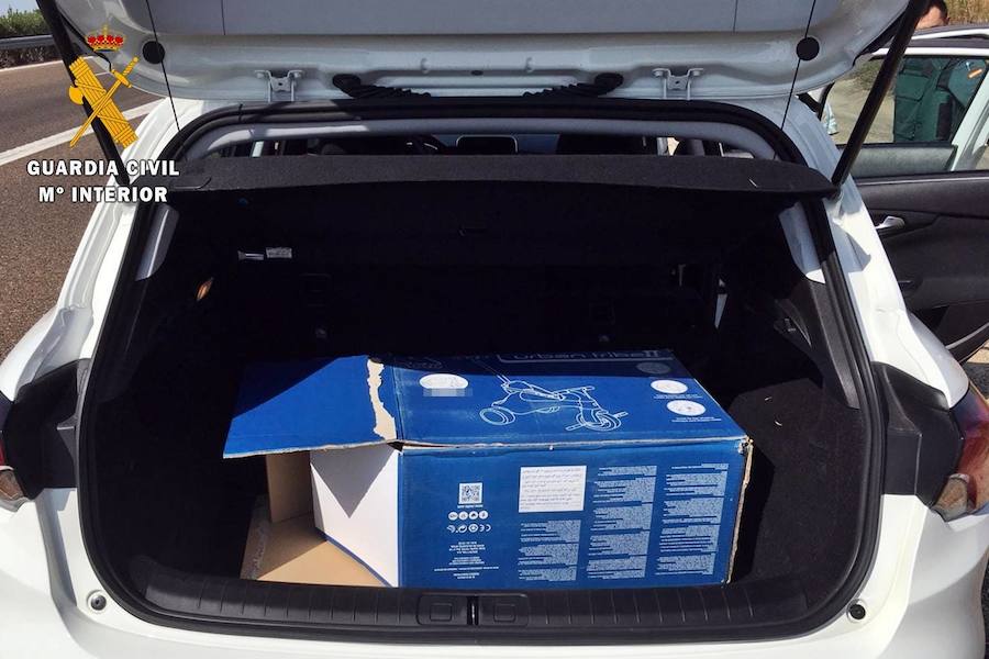 Identificado el conductor, los agentes percibieron un fuerte olor en el turismo, por lo que registraron el interior. Así, hallaron oculto en el maletero una caja de un juguete infantil que intentaba camuflar los 2.530 gramos de cogollos de marihuana que transportaba, de los que se podían obtener en el mercado clandestino unas 7.600 dosis. También se intervinieron 300 euros, presuntamente obtenidos del tráfico de la droga.