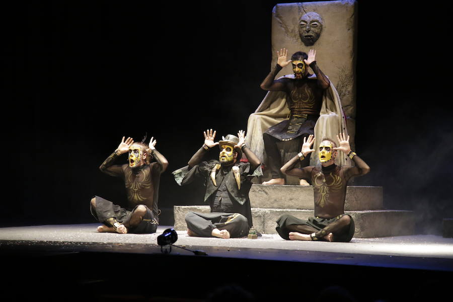 Una tribu de hombres primitivos que aún no dominan el lenguaje, pero que son capaces de comunicar a través de la música, un magnífico despliegue vocal y de expresión corporal atrapó al público desde el principio comviertiéndose en parte de la tribu al servicio del jefe, coreando o palmeando canciones de siempre entre las que pudimos reconocer temas como "Sweet Dreams" de Eurythmics, Highway to hell de AC/DC, o el mítico Bohemian rhapsody de Queen, o un increíble mix de bandas sonoras de films como Superman, Indiana Jones, Star wars, o ET.