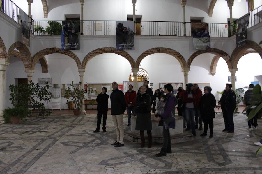 Miembros de Fundación Triángulo acompañaron a la artista y a la concejala de Bienestar Social, Mayca Cabello y al alcalde de Zafra, José Carlos Contreras en el recorrido por los paneles colocados sobre los arcos del patio del consistorio.