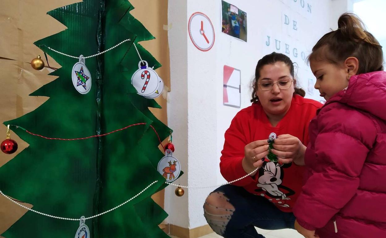 Este año, la actividad se ha llevado a cabo de forma diferente al no poderse realizar como siempre en el abeto de la Plaza de la Villa de Madrid, junto a la Casa de la Juventud, que no ha podido habilitarse para ello. Esta vez, los jóvenes han coloreado bolas de Navidad con diferentes motivos y han escrito por detrás sus mejores deseos para después colgarlas en dos pequeños abetos de cartón, tal y como ha explicado Estefanía Patilla, coordinadora y directora de la Ludoteca Rural.