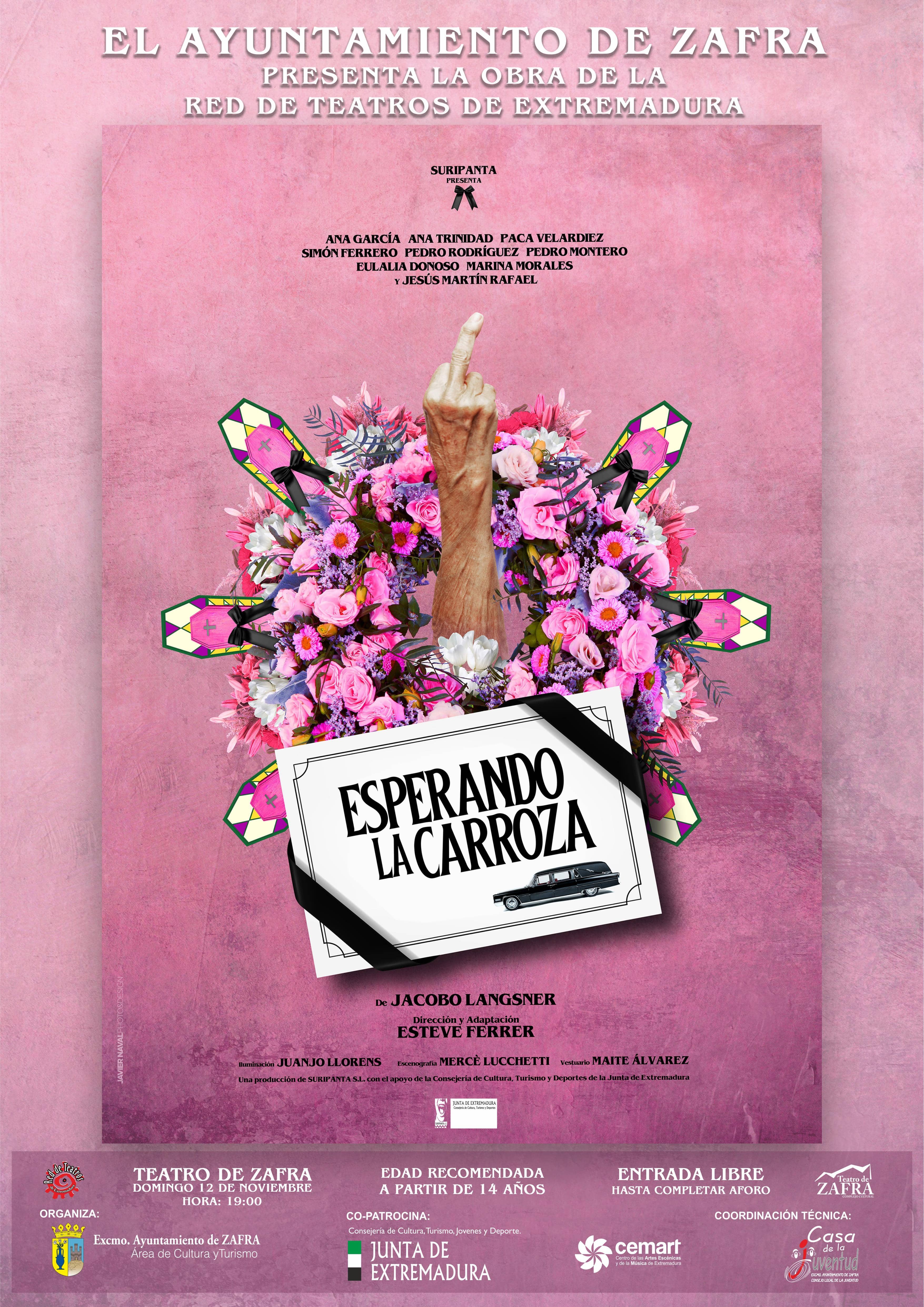 La compañía Suripanta Teatro representará el próximo domingo, 12 de noviembre, a las 19 horas, en el Teatro de Zafra, la obra 'Esperando la Carroza', recomendada para todo tipo de públicos a partir de los 14 años. La entrada es gratuita.