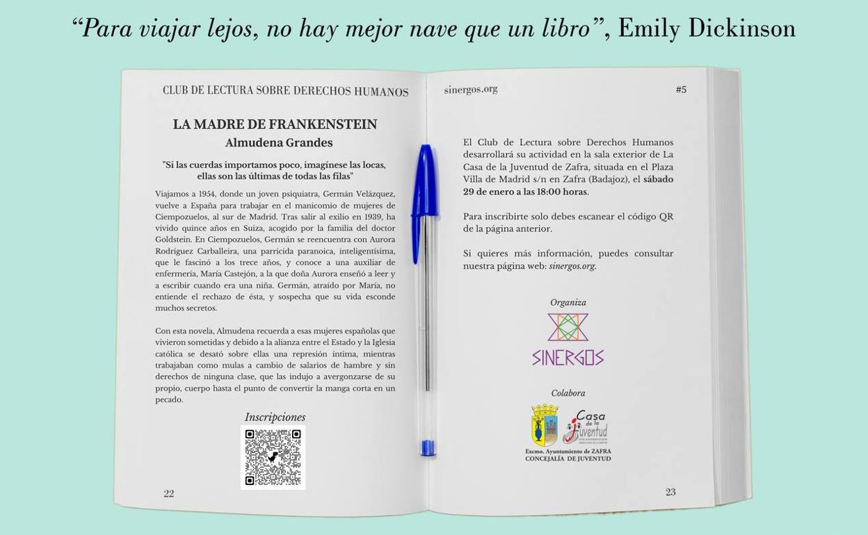 Con este objetivo ... el próximo 29 de enero, a las 18.00 horas, se leerá en la sala exterior de la Casa de la Juventud de Zafra una de las obras de la escritora, 'La madre de Frankenstein'.