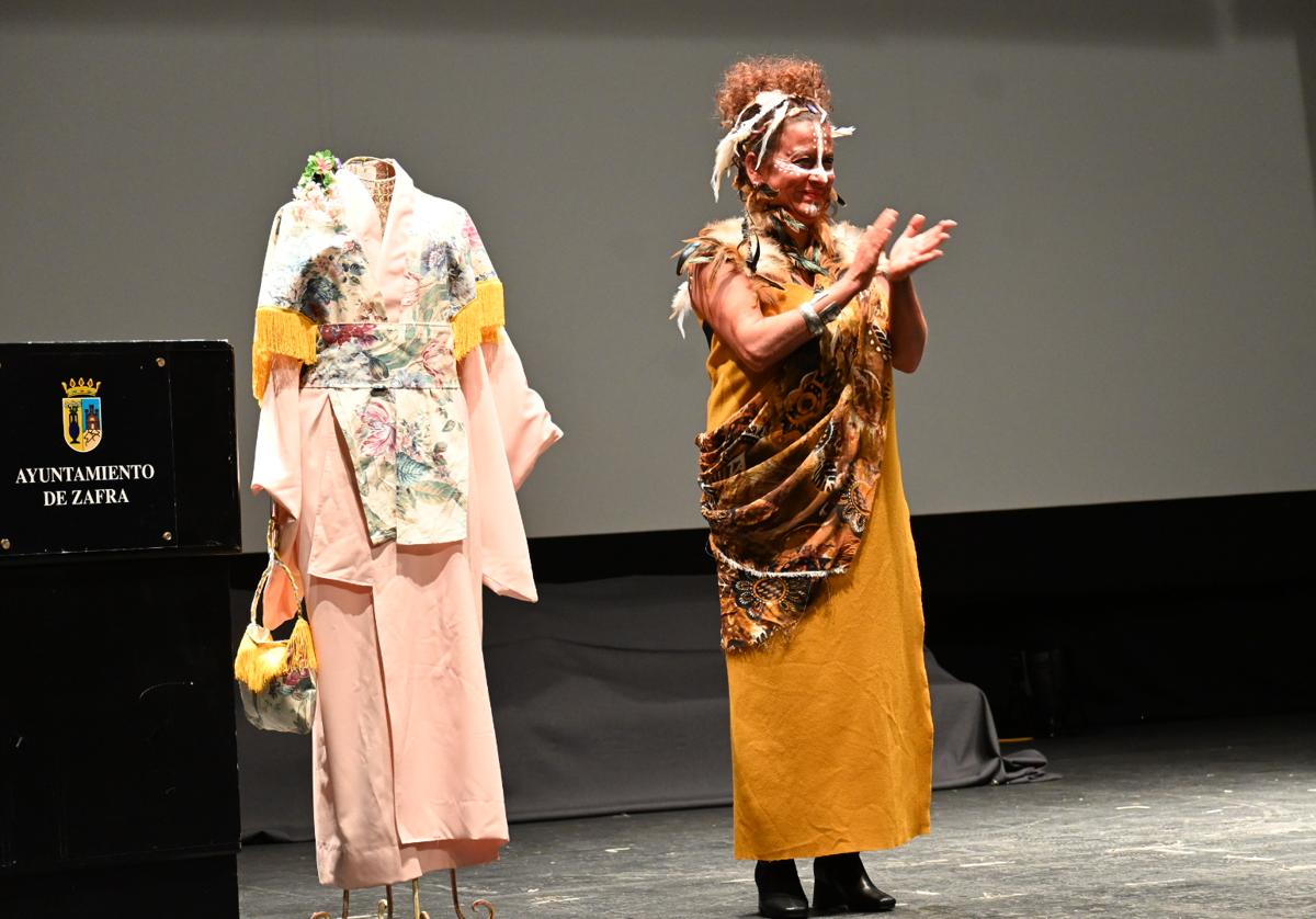Al terminar, el alcalde de Zafra, Juan Carlos Fernández, acompañado de la directora de la Universidad Popular de Zafra, Josefa Moreno, hicieron entrega de un obsequio y un ramo de flores a la pregonera.