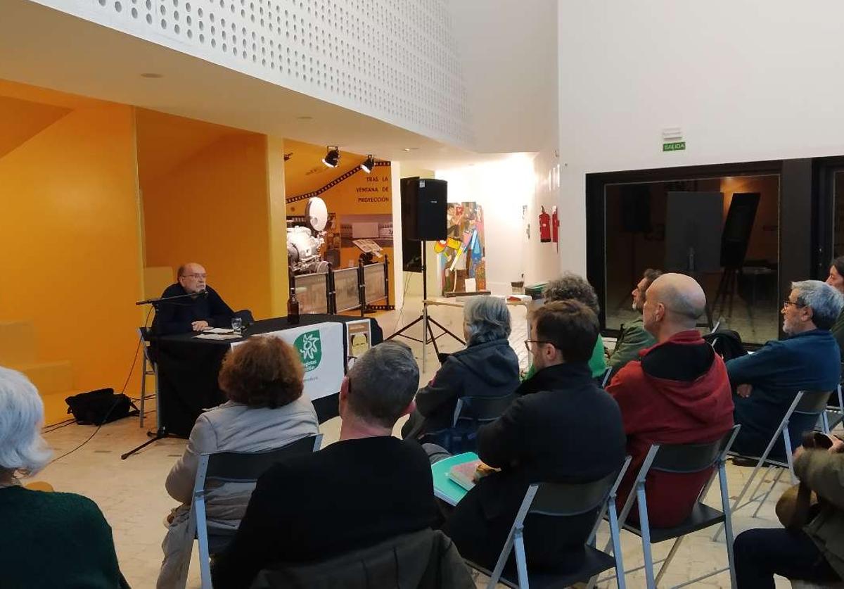 Carlos Taibo, profesor (ya jubilado) de Ciencia Política de la Universidad Autónoma de Madrid y escritor, ofreció una charla-coloquio sobre decrecimiento y colapso en el vestíbulo del Complejo Cultural Teatro de Zafra, organizada por Ecologistas en Acción Zafra.