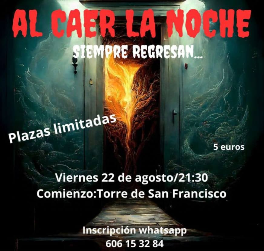 El próximo viernes 22 de agosto tendrá lugar 'Al caer la noche siempre regresan…', una ruta teatralizada de terror interactivo organizada por varias compañías teatrales de Zafra, tras el éxito que tuvo el año pasado. La salida será a las 21.30 horas desde la Torre de San Francisco.