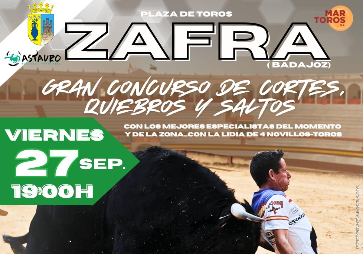 La Plaza de Toros de Zafra acogerá el próximo 27 de septiembre, a partir de las 19 horas, el Gran Concurso de Cortes, Quiebros y Saltos, con novillos-toros de la ganadería Voltalegre.