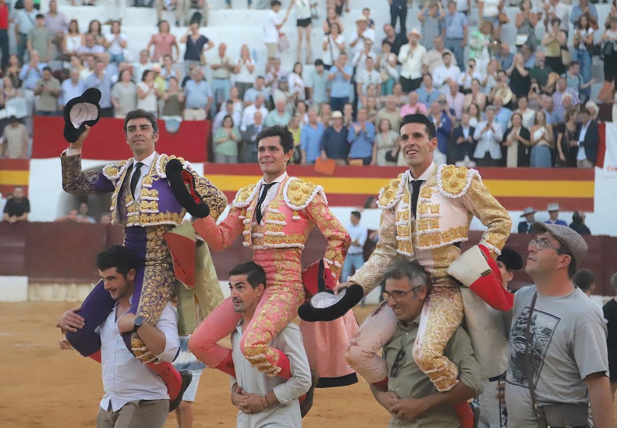 Los rejoneadores y toreros de los festejos taurinos de la feria salieron a hombros de la plaza