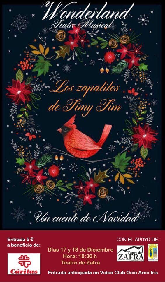 La Compañía de Teatro Wonderland representará el teatro musical 'Los zapatitos de Timy Tim: Un cuento de Navidad' este sábado 17 y el domingo 18 ... de diciembre, a partir de las 18.30 horas en el Complejo Cultural Teatro de Zafra, destinada al público familiar y dentro del programa de actividades navideñas del ayuntamiento.