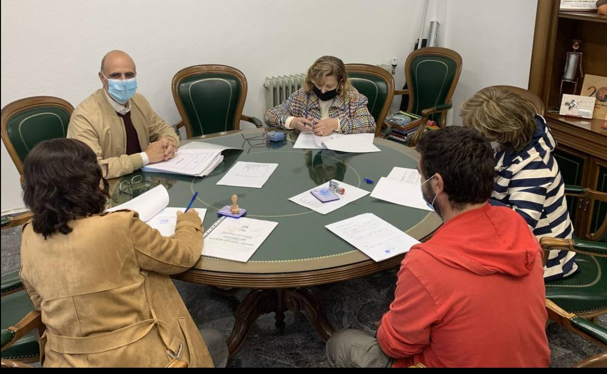 Durante una hora, los representantes de las distintas asociaciones junto con el alcalde han firmado el convenio de forma escalonada para evitar aglomeraciones y garantizar la seguridad sanitaria.
