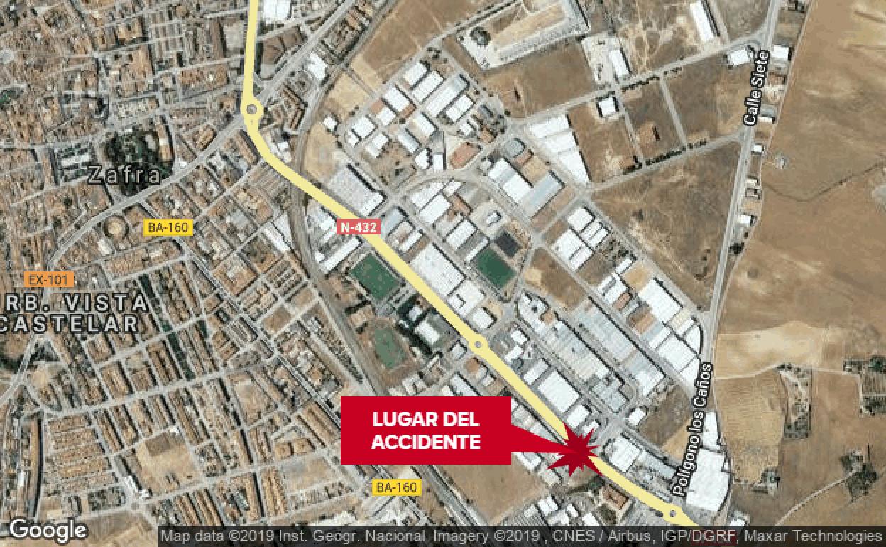 El suceso ha tenido lugar sobre las 22.30 horas de este pasado domingo en el polígono Los Caños de Zafra, a la altura de Híper Frutas David.