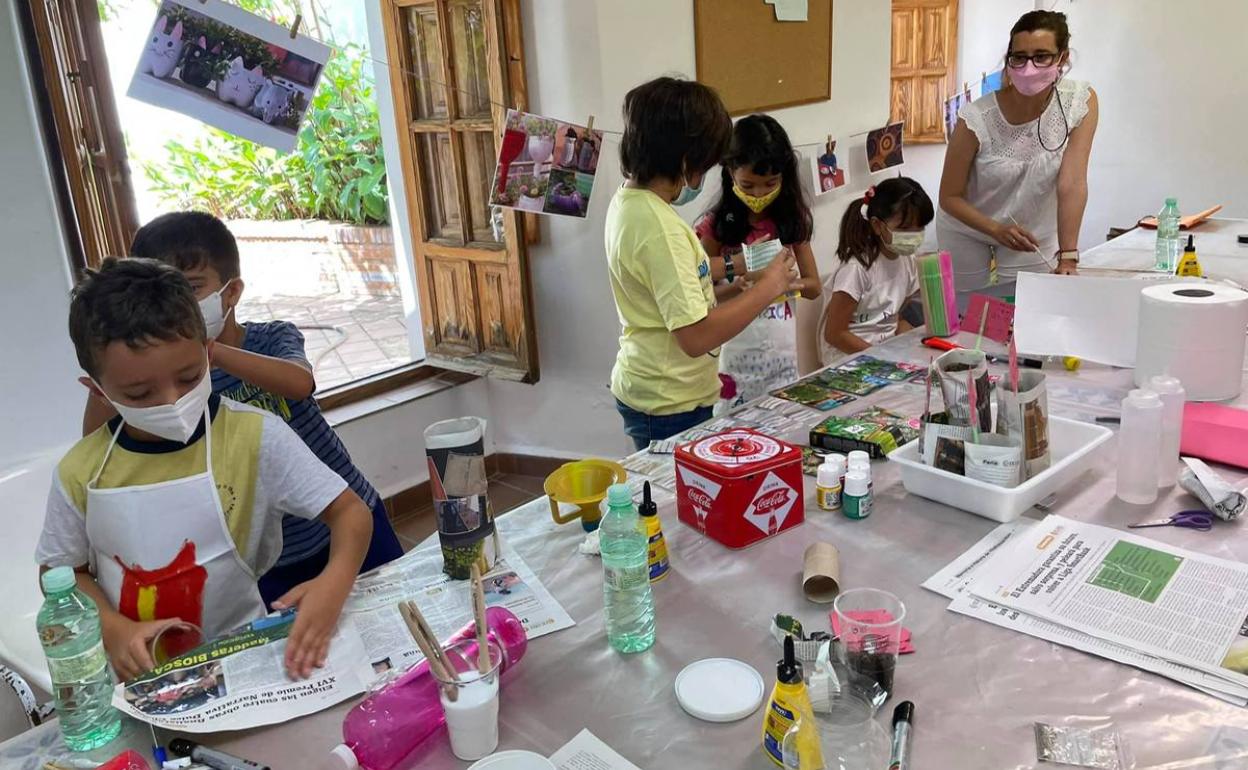 Debido a la situación sanitaria originada por la pandemia de coronavirus el taller de Eco-Cultura se ofertó para un máximo de siete niños, aunque en estos momentos se encuentran participando solo cinco, que cumplen con todas las medidas de seguridad sanitaria.