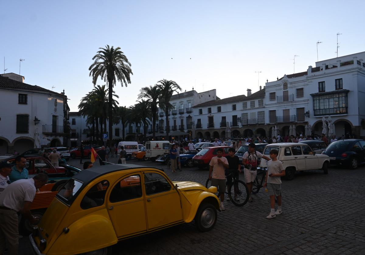 En torno a las 20 horas tuvo lugar la concentración y las inscripciones en la plaza Grande, que sirvió de escenario para que el público que pasaba por allí pudiera contemplar todos estos vehículos de diversos modelos y épocas a modo de exhibición. Los integrantes de la asociación y los participantes también disfrutaron de un aperitivo en uno de los bares de la plaza.