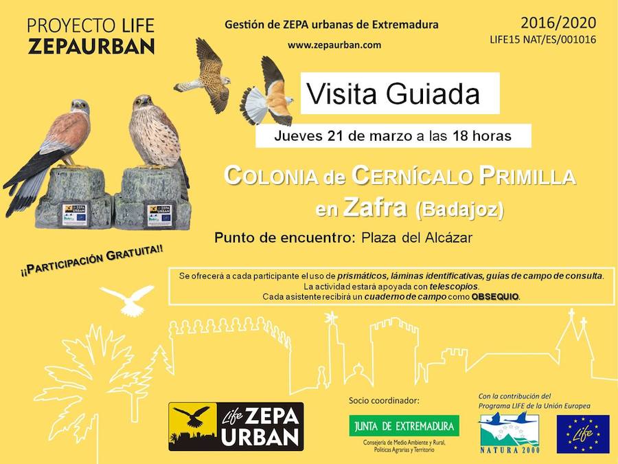 El próximo jueves 21 de marzo a las 18.00 tendrá lugar la visita guiada a la colonia de Cernícalo Primilla de Zafra.