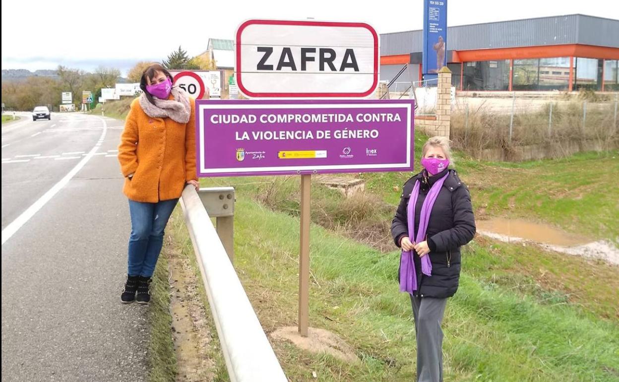 Desde el pasado jueves 26 de noviembre, se puede ver en las entradas de Zafra una nueva señalización de tráfico en la que se recuerda que Zafra es una 'Ciudad comprometida contra la violencia de género'.