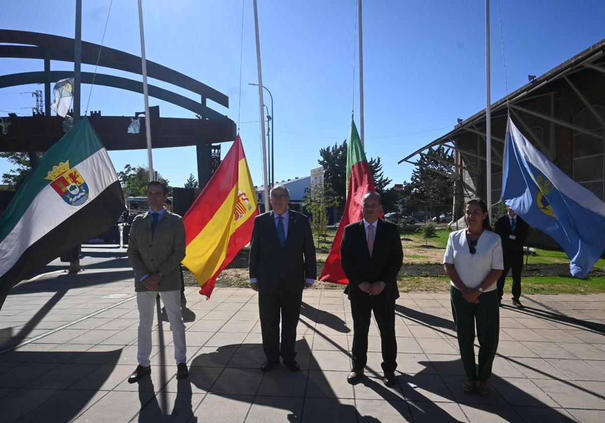 Tras las intervenciones, el presidente de la Cámara Municipal de Estremoz ha entregado a Juan Carlos Fernández una figura típica portuguesa de cerámica. Después se ha procedido al acto más institucional, con el izado de banderas y los himnos de Extremadura, Portugal y España. Han participado, además de ambos alcaldes, el director general de Agricultura y Ganadería de la Junta de Extremadura, José Manuel Benítez, y la pregonera de la FIG, Elena Diéguez.