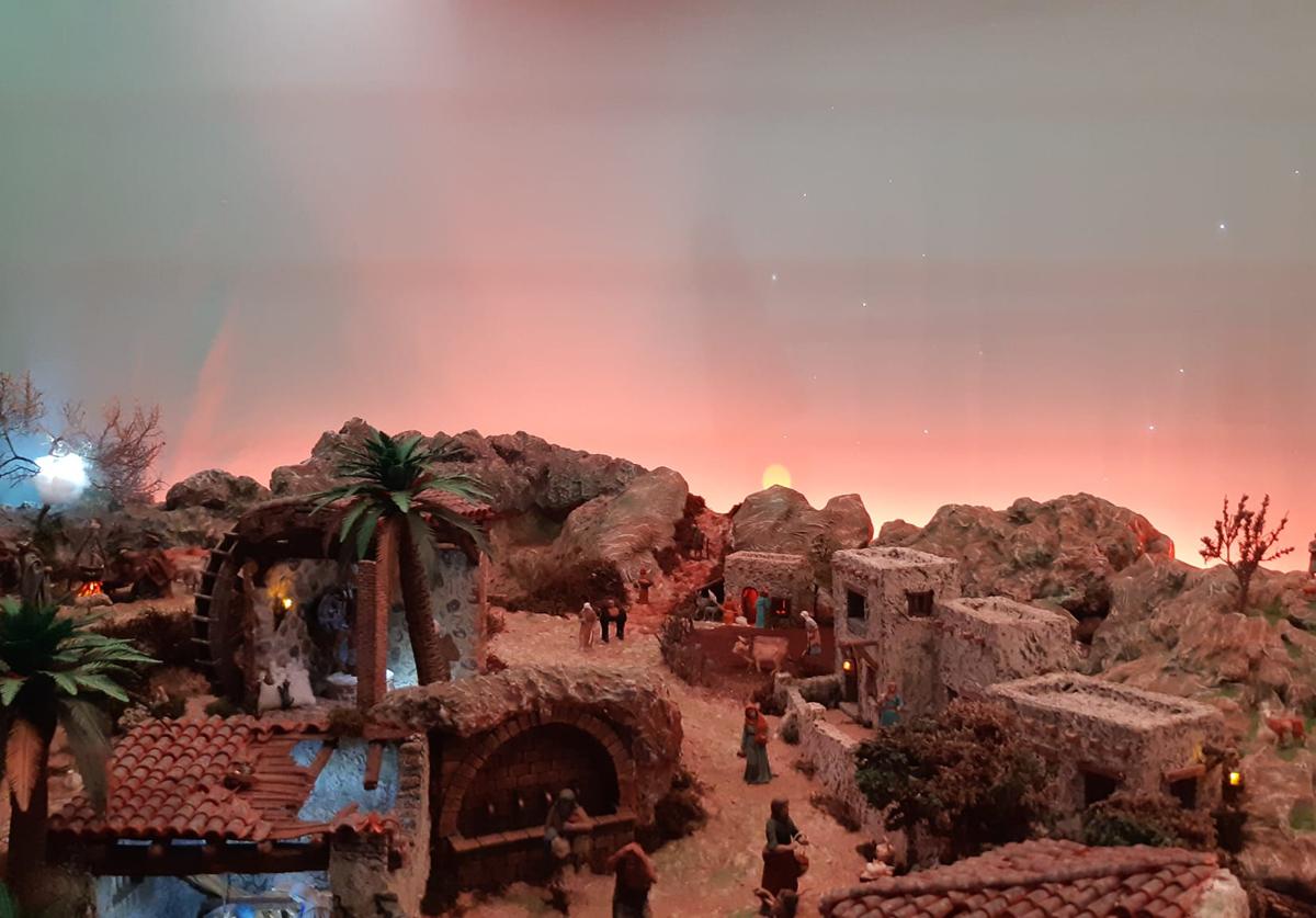 El belén de la familia Hernández Pérez podrá visitarse hasta el 10 de enero. Se trata de un belén tradicional hebreo que mide 10 metros cuadrados y cuenta con más de 100 figuras de 12 centímetros, salvo un San Francisco que es algo mayor por ser el patrón de los belenistas. En él se pueden contemplar además numerosos efectos: el amanecer y el ocaso, hay lluvia y tormenta, agua, humo e, incluso, peces reales.